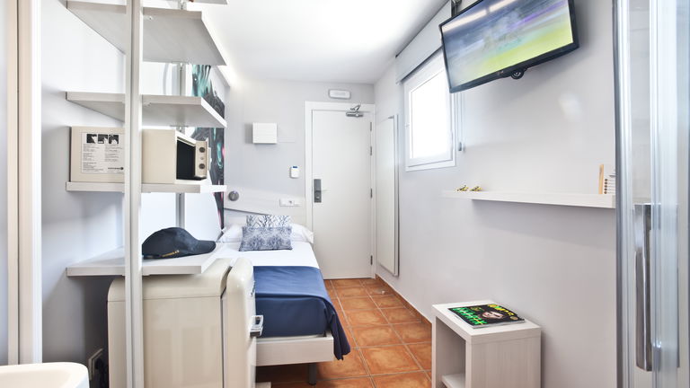 Incluye gratis: Internet Wifi de alta velocidad | Baño con ducha | TV satelite con pantalla plana | Caja fuerte | Servicio despertador | Armario | 1 cama individual | Limpieza diaria | Cambio de toallas diario | Cambio de sabanas semanal | Aire acondicionado | Ubicación edificio A | Con ventana | Nevera.