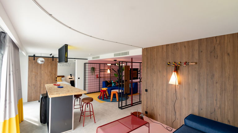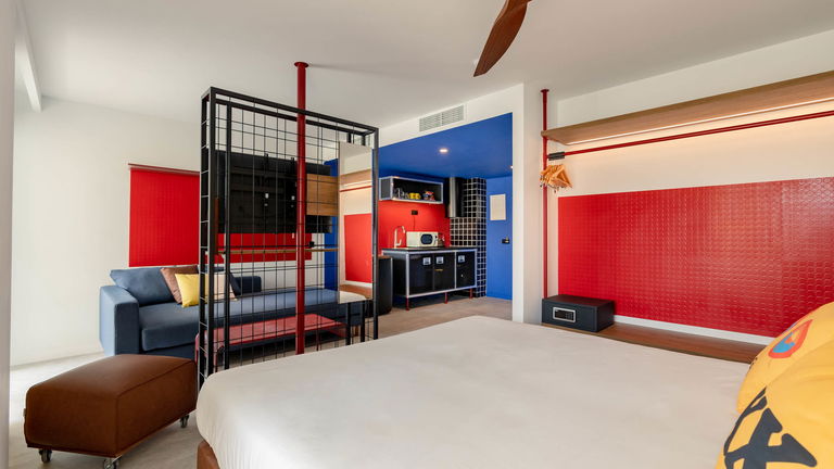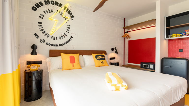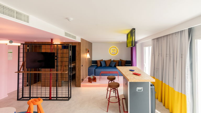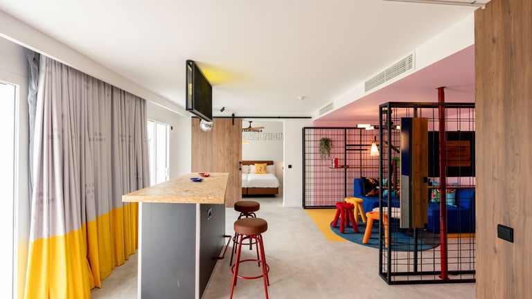 58 metros cuadrados de habitación y, ¡atención!. 23 de terraza en el piso más alto para que disfrutes de las increíbles vistas de la piscina y nuestro escenario.