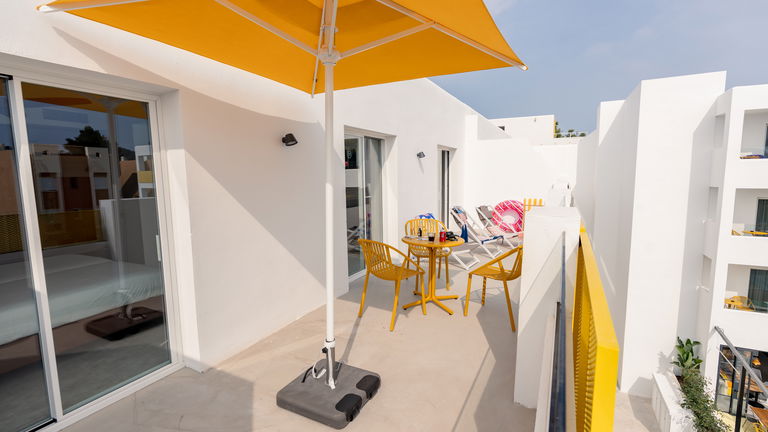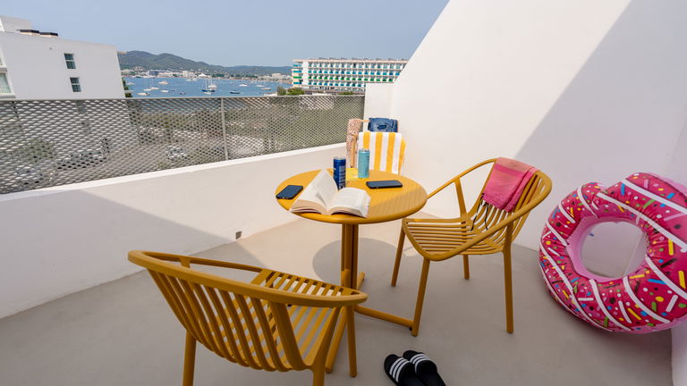 Habitaciones superiores con balcón y vistas laterales al mar. Espacio, diseño y toda la comodidad RYANS.
