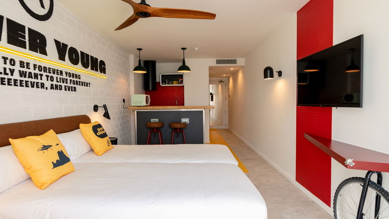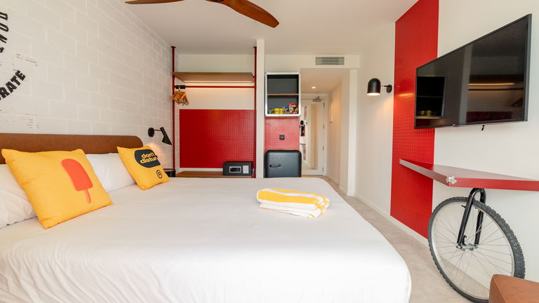 Habitaciones con todos los detalles RYANS, cómodas, espaciosas y con vistas a nuestro escenario en la zona de la piscina. Perfecta para disfrutar de todos nuestros Shows desde tu habitación.