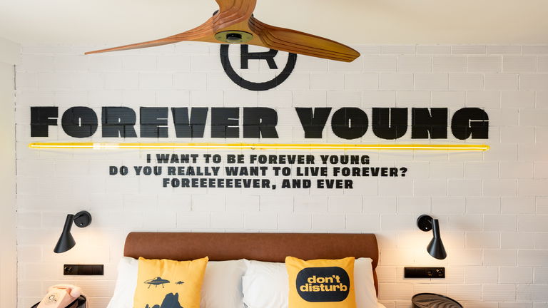 El paraíso tiene un nombre… ROOM 666. (A Lucifer no le gusta esta habitación) En nuestro particular paraíso no hay límites para el deleite y para condenar tu cuerpo. Nuestro compromiso es satisfacer tus más oscuros anhelos culinarios con nuestras smash burgers, disponibles para ti GRATIS, durante un día entero cuando te quedas en esta habitación. *Durante el horario del infierno de nuestra cocina.